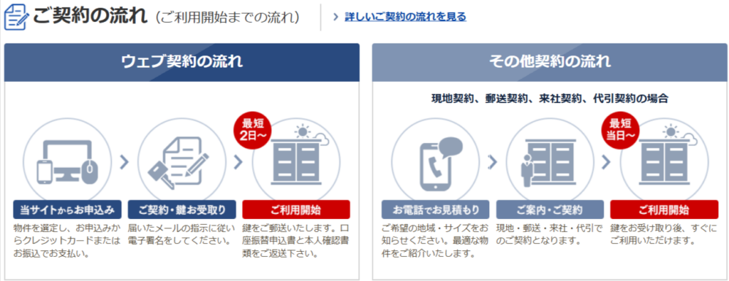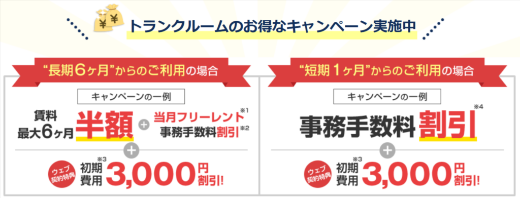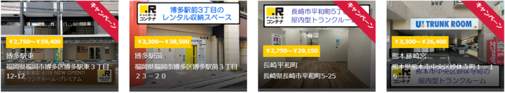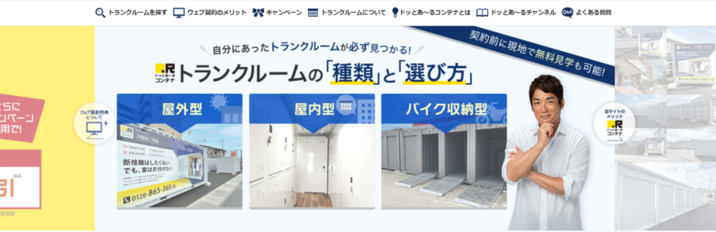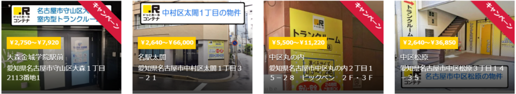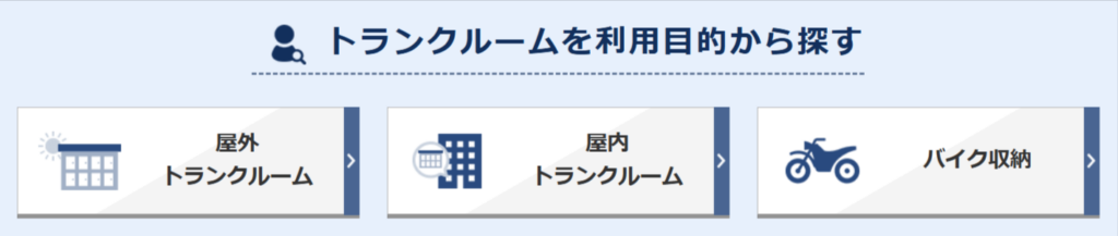 ・オンライン契約対応 ・屋内・屋外型のトランクルーム ・24時間利用可能