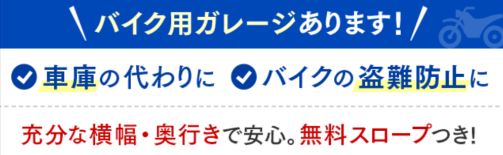 ・バイク収納OK ・空調設備、換気設備導入 ・防犯カメラ完備