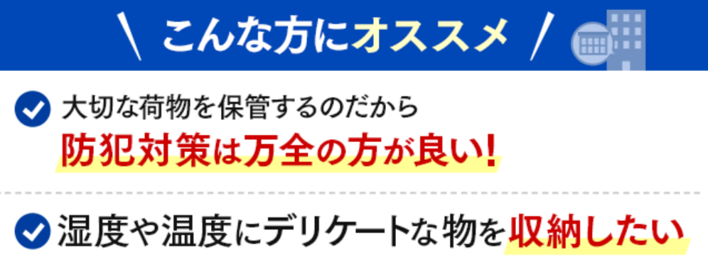 ・空調完備が整っているため、気温や湿度に左右されるデリケートな物におすすめ