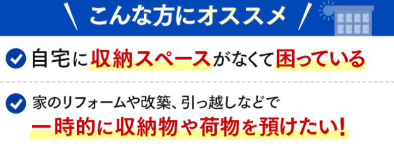 家財道具の保管、 会社書類の保管など個人、法人問わず利用できるようです。